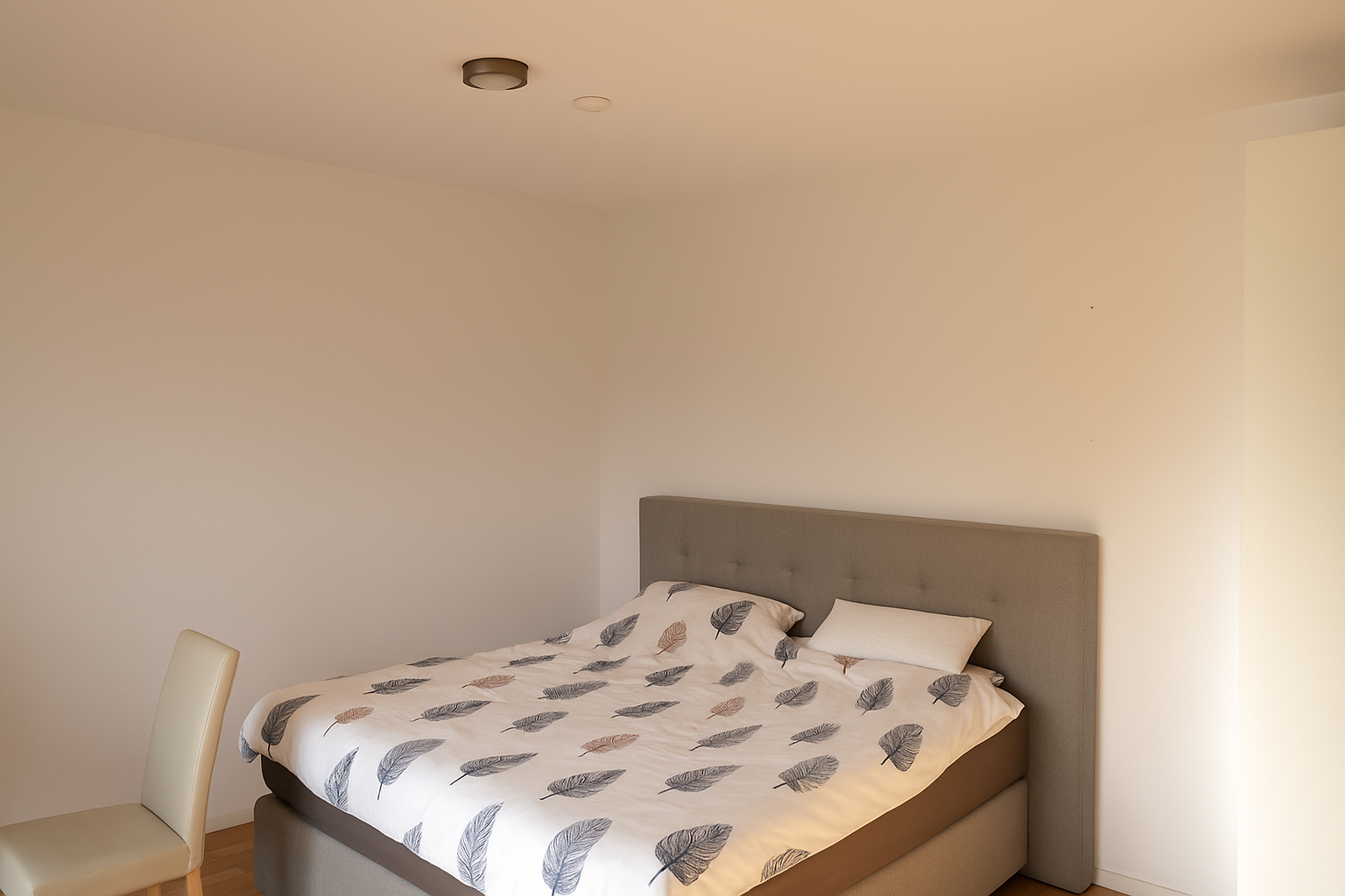Fenster, die viel Tageslicht hereinlassen. Ein französischer Balkon erweitert den Raum optisch und schafft ein angenehmes Wohngefühl.